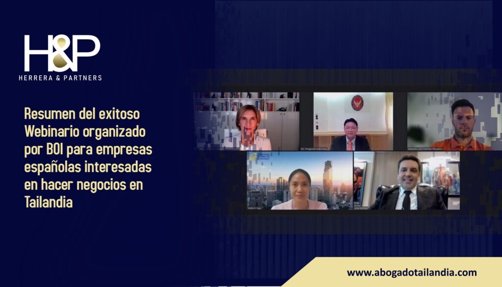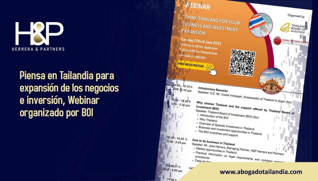 Nos complace anunciar que Don José Herrera será un conferenciante seleccionado en representación de nuestro despacho de abogados en Bangkok H&P en el webinario "Piense…