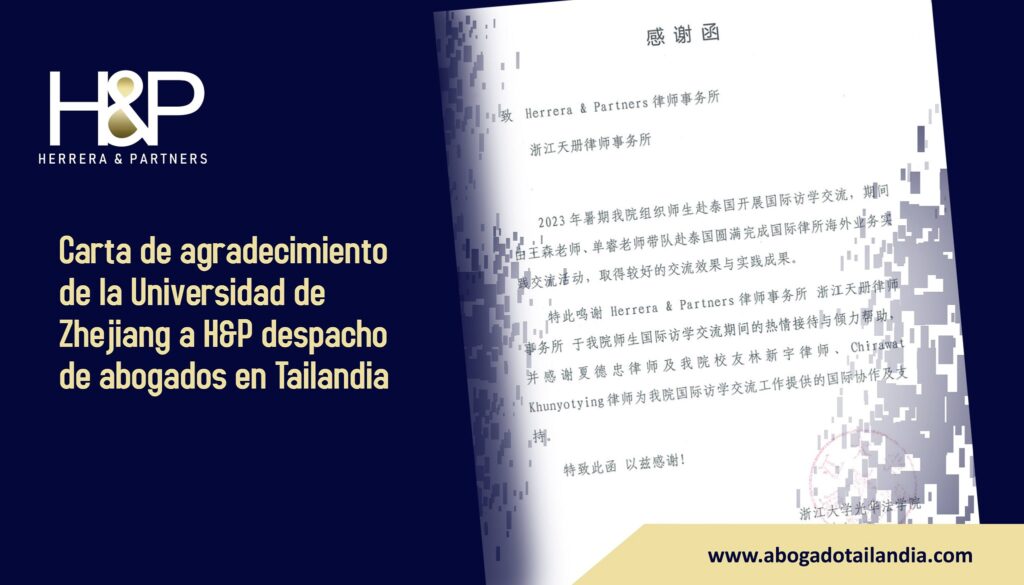 Hoy martes 29-08-2023 nuestro despacho de abogados en Tailandia Herrera y Partners H&P recibió una carta de agradecimiento por parte de la Facultad de Derecho…